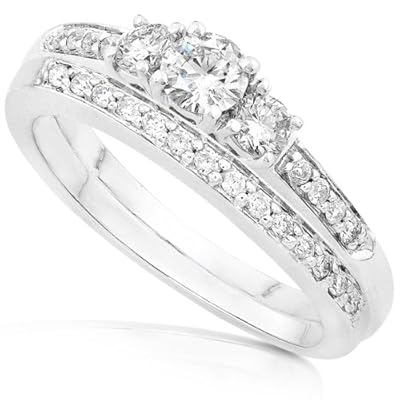 5/8ctw Three Stone Round Diamond Wedding Ring Set in 14kt White Gold (HI/I1-I2)