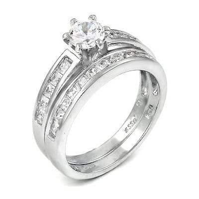 Sterling Silver Cubic Zirconia CZ Wedding Engagement Ring Set