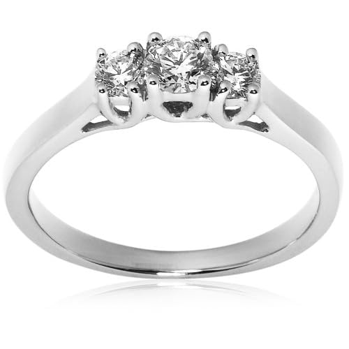 14k White Gold 3-Stone Diamond Ring (1/2 cttw, H Color, SI2 Clarity), Size 8